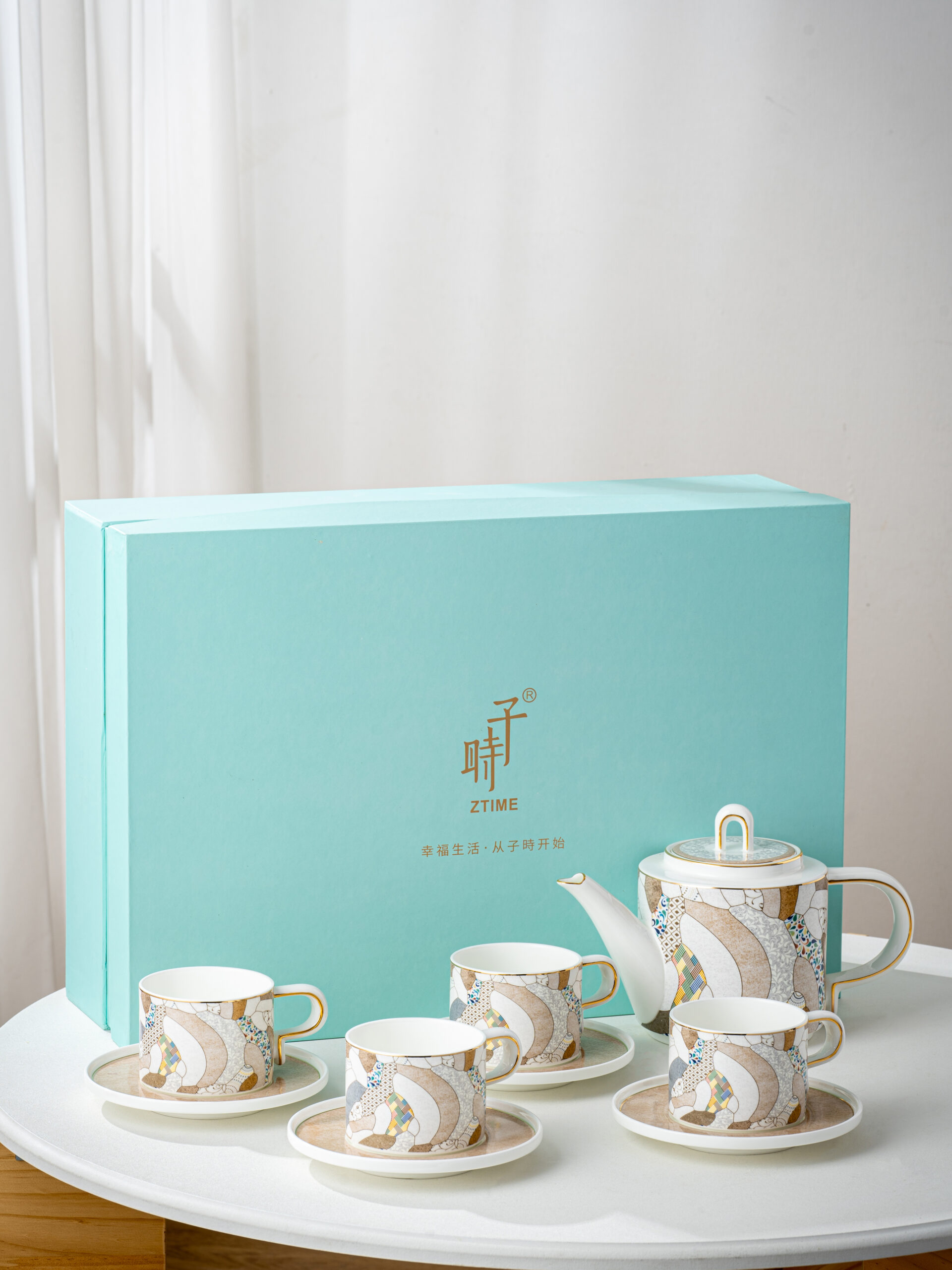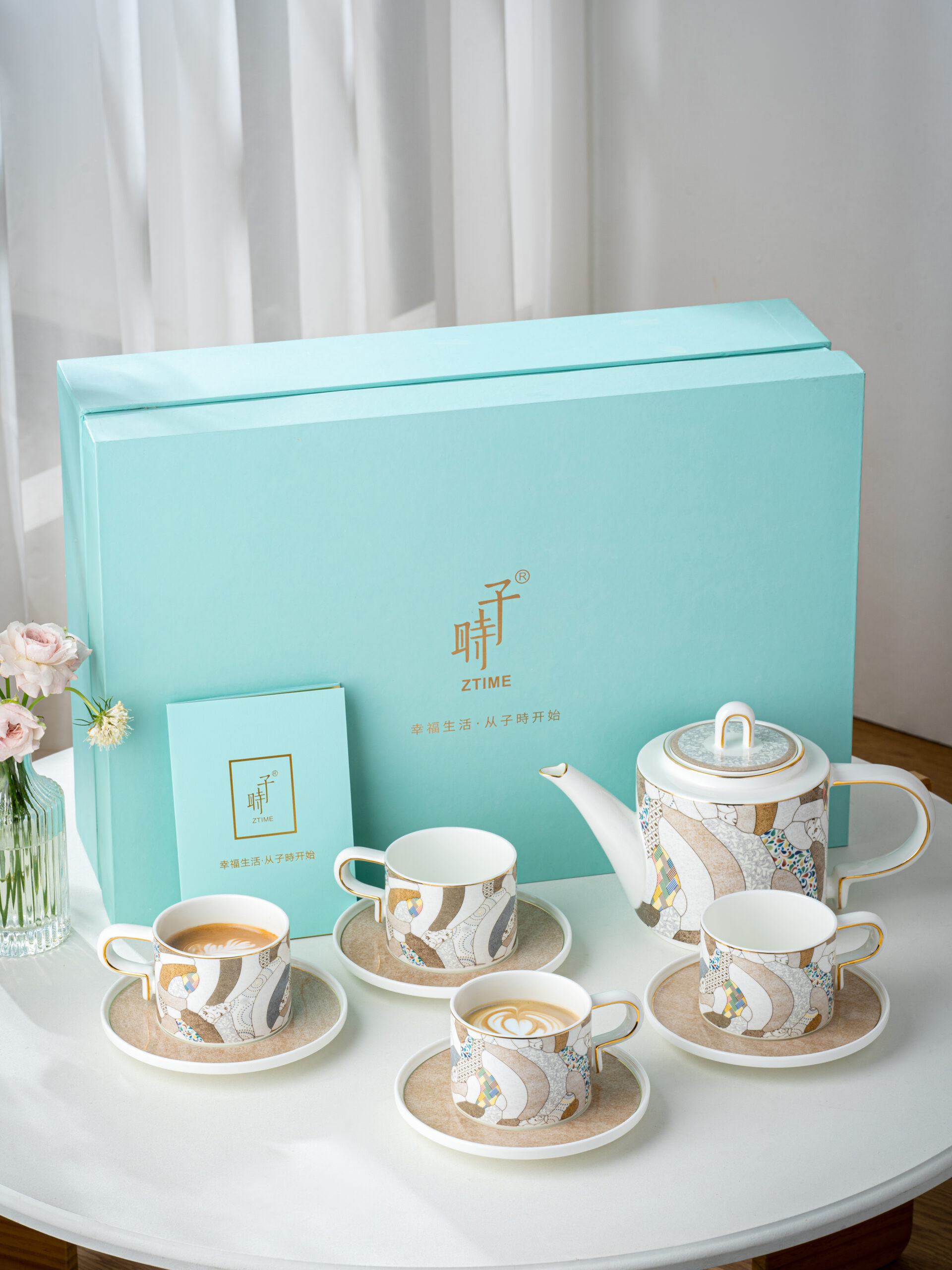 Zi Shi Modern Elegance Gift Set – Fine Bone China Tea & Coffee Service (1 Teapot + 4 Cups & Saucers)