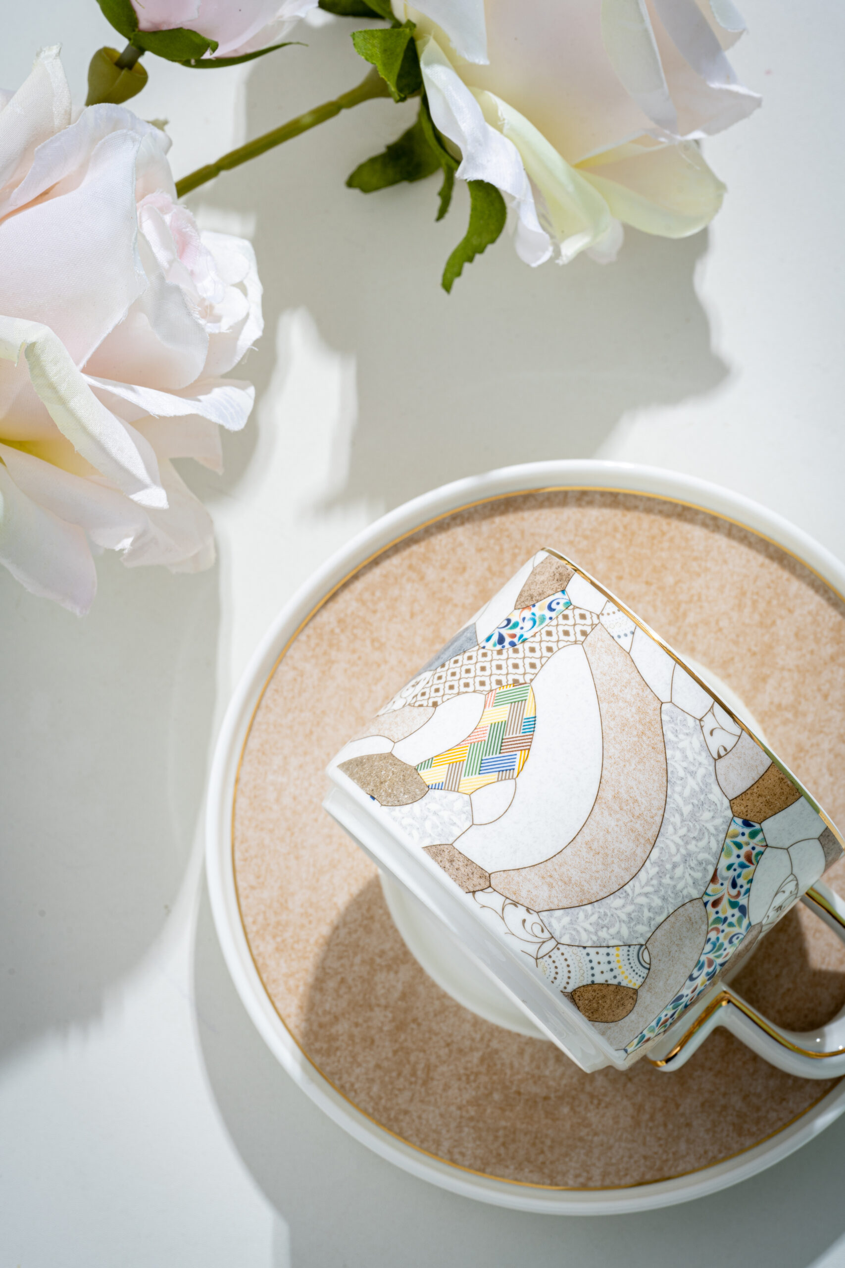 Though beautiful, bone china glaze is relatively fragile. Never leave tea, coffee, or any liquid in the cup overnight. Prolonged soaking may cause discoloration, water stains, or hygiene issues.